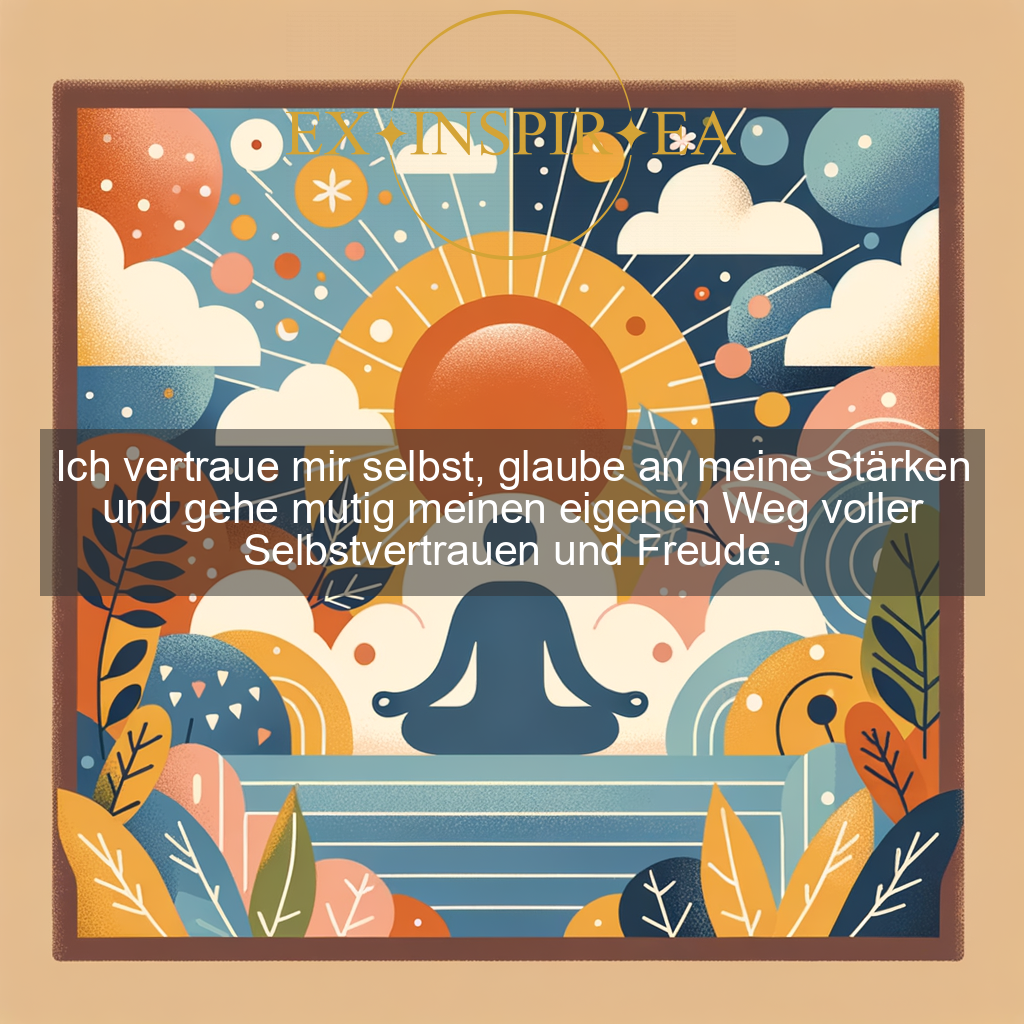 Ich vertraue mir selbst, glaube an meine Stärken und gehe mutig meinen eigenen Weg voller Selbstvertrauen und Freude.